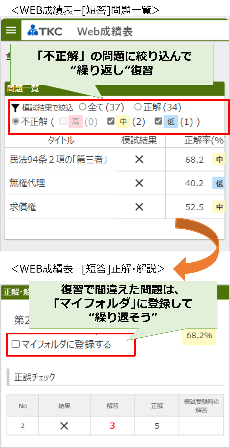 「[短答式]TKC全国実力確認テスト」は、年に3回、定期的に行われ、私は全て受験しました。短答式試験の過去問だけ解いていても、